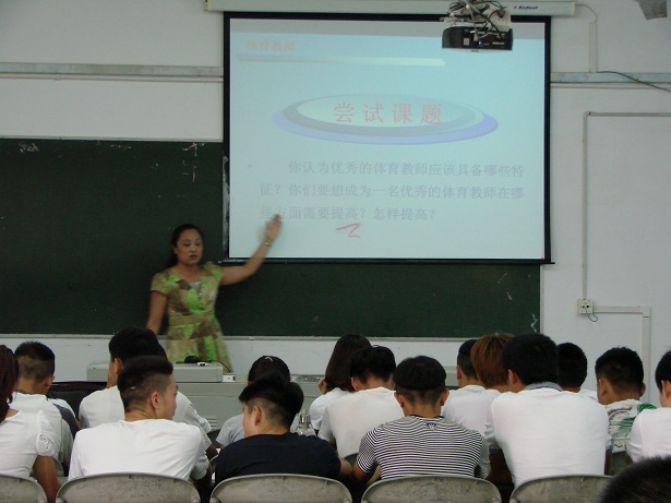 随后,申向军老师对4位同学的尝试讲解进行了评价,首先对同学们课外能自主学习进行了充分的肯定,认为同学们对优秀体育教师的认识还是比较全面的,但缺乏归纳和总结,讲解比较散乱,并指出了发言同学在讲解过程教师技能上的优点与不足。接着,申老师对体育教师的地位与劳动特点、体育教师的类型特征及体育教师的基本条件与职责进行了深入系统的讲解,特别是针对同学们讲解中不清楚的地方,通过联系同学实践、举例分析等方法,使同学们对优秀体育教师应具备的条件与职责有了清晰的认识,为以后从事体育教师工作打下了良好的基础。