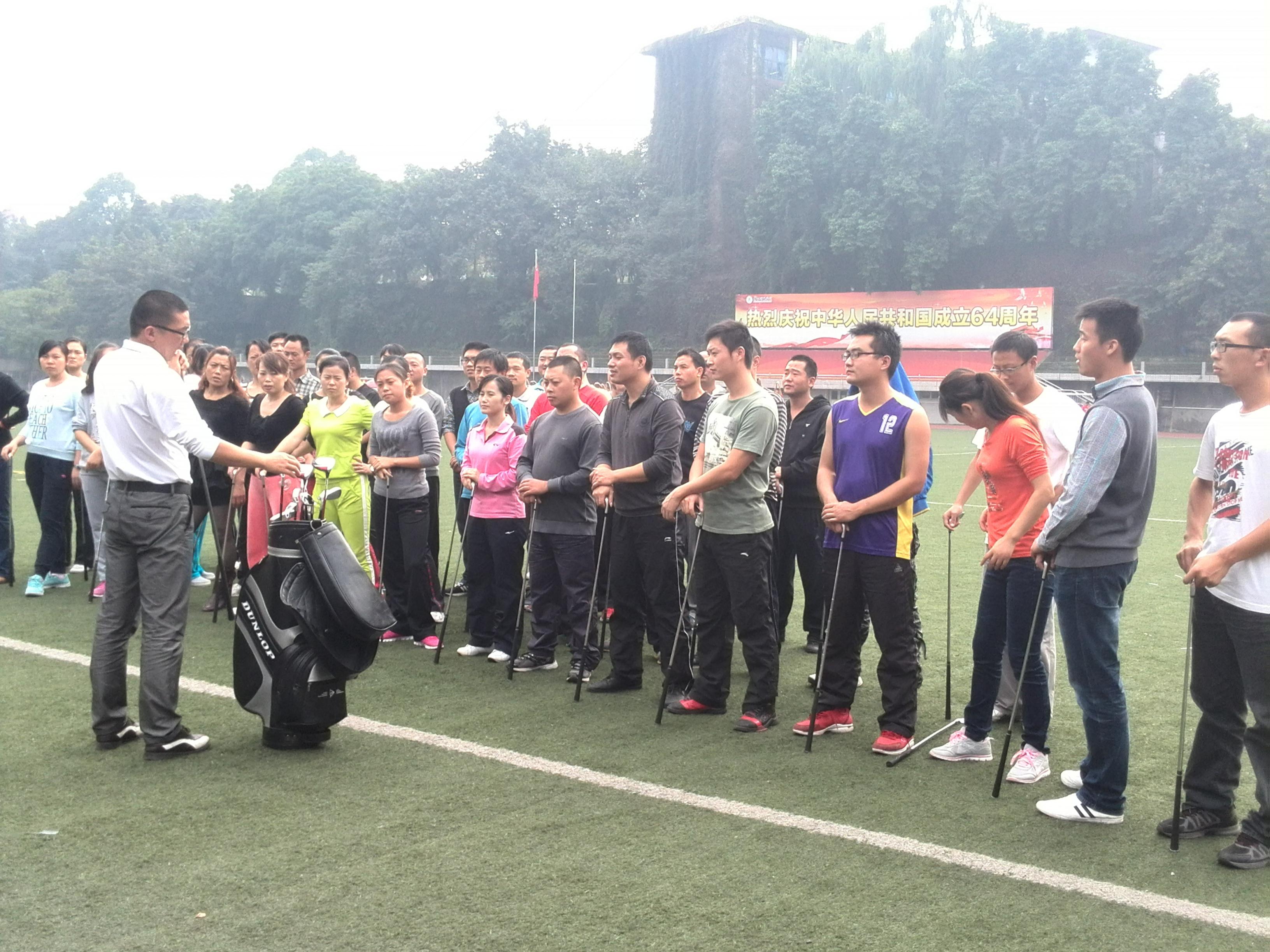 下午14点30分至16点10分,在上午学习高尔夫球的基础上,国培学员进行了高尔夫球实训。在唐玉栋老师的指导下,各位学员手握高尔夫球棒在原地进行挥棒击球练习,为了避免对球杆失控,每位成员每次挥杆击球都尽量的避免过分用力。