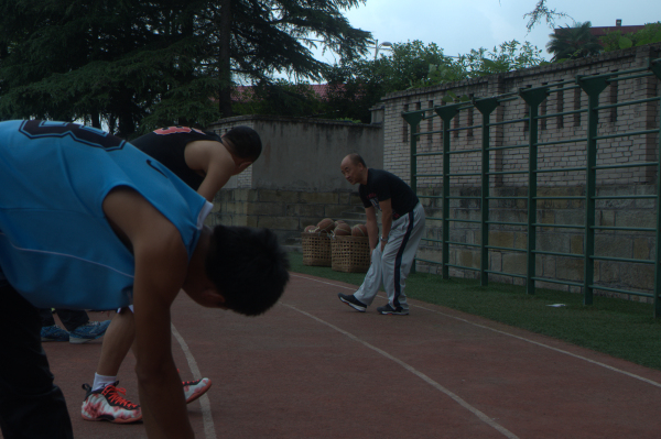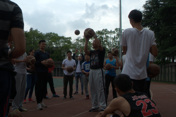 整队集合后,志愿者们在老师的带领下,开始做准备活动。准备活动分为三个阶段,第一个阶段为动态练习,让同学们做一些一般性的热身练习(头部.扩胸.振臂……),这些练习大部分老师都会教导,所以,对于小员工来说,已经很熟练;接着是第二部分,主要为静态练习,这一部分是最重要的部分,为了避免在篮球运动的过程中受伤,必须充分活动肩韧带,手腕,手指,腰部,大腿,小腿等。所以会有一些专门针对篮球的静止性见习,如压手指,牵拉手臂,背人,压腿部韧带等,这些动作,很适合小员工,他们也比较容易完成;随后进行第三部分练习,也就是拉体能,拉体能主要是用跑步来解决。篮球是一项体力要求很高的运动,在比赛的过程中,体能是保证完成比赛的基本,所以,在平时的练习中,体能练习是必不可少的,对于小员工来说,适当的拉拉体能,对他们的身体,学习都很有帮助。最后,员工在老师的带领下又进行了一些简单的动作,主要有握球姿势,基本的运球动作,传球等。老师提出对小员工的教学,最主要的是基本功,这些功夫扎实了,以后的篮球发展才会更好。