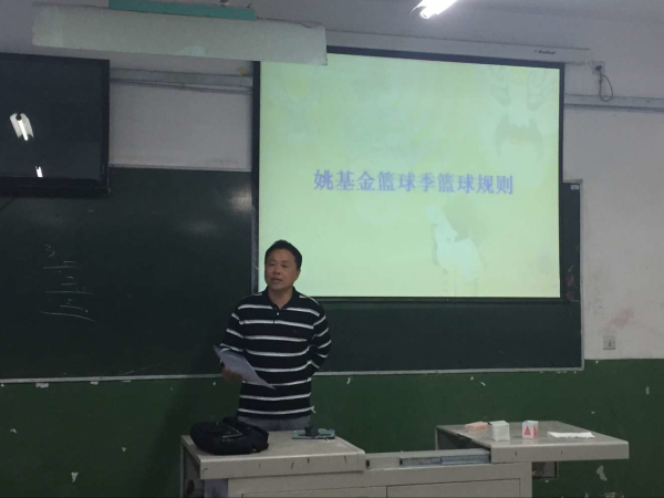 4月24日晚7时,新葡的京集团8814教师魏勇在六教201教室对2013级、2014级篮球专项班的员工进行了“2016姚基金希望小学篮球季”志愿者培训,培训课程为《姚基金篮球季规程》。