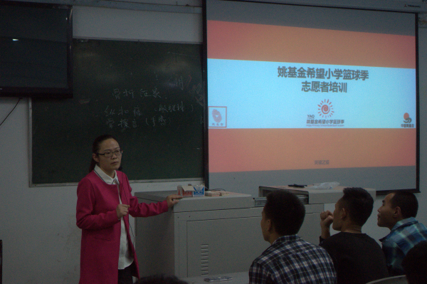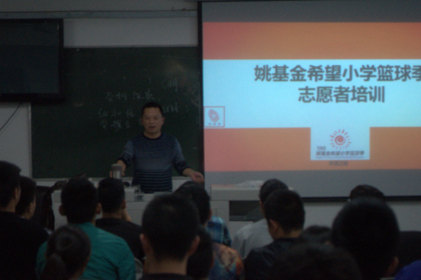4月17日晚上7时,新葡的京集团8814教师谢健生、李俭莉在六教201教室对2013级、2014级篮球专项班的员工进行了“2016姚基金希望小学篮球季”志愿者培训,培训课程为《运动损伤应急处理》。
