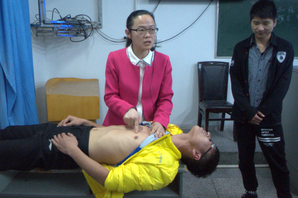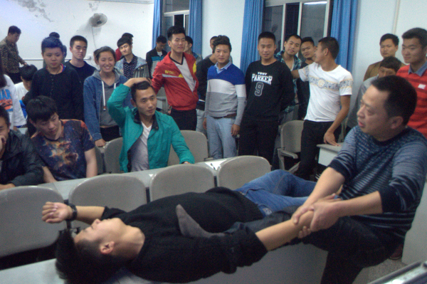 李俭莉老师给同学们讲授了运动中突发晕厥的应急处理,在运动中人的休克状态常导致人的处死,所以李俭莉老师指导员工如何判断人在休克状态是否有处死的现象,如何解决这类问题?李俭莉老师教了大家几种急救的方法,提高同学们的判断力。