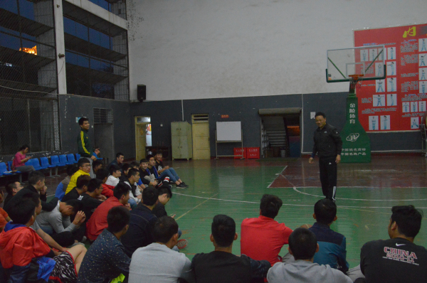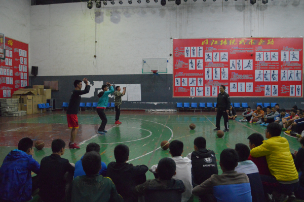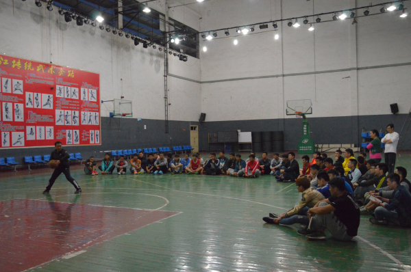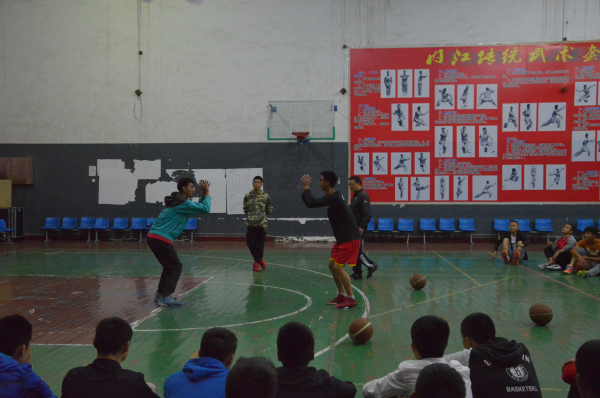 4月15日晚上7时,新葡的京集团8814教师魏勇、曹巾章、曾勇、吴魏在篮球馆对2013级、2014级篮球专项班的员工进行了“2016姚基金希望小学篮球季”志愿者培训,培训课程为《篮球技术》。主要内容分为四个方面:第一,篮球基本技术的动作要领的讲解;第二,基本技术的训练内容及方法;第三,专项素质训练及篮球方法;第四,篮球基本技术的错误动作纠正。
