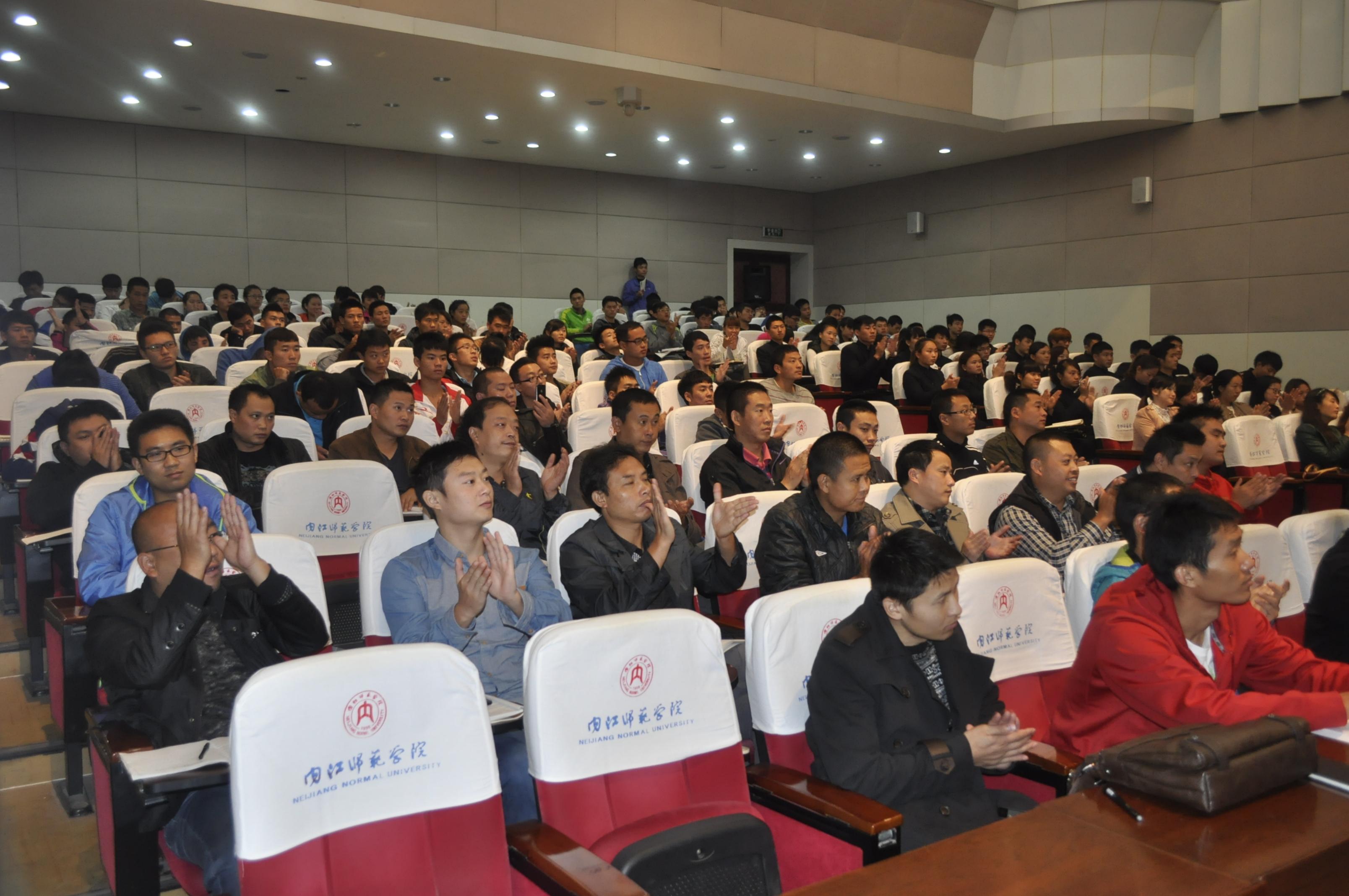 新葡的京集团8814经理王斌,党总支书记冯亚平,副经理徐武、谭伟平,党总支副书记李才宝、教学办主任魏玲、教师周勇、吴保占、全体2012级体育教育专业员工及全体国培学员到场聆听了讲座。讲座由王斌经理主持。