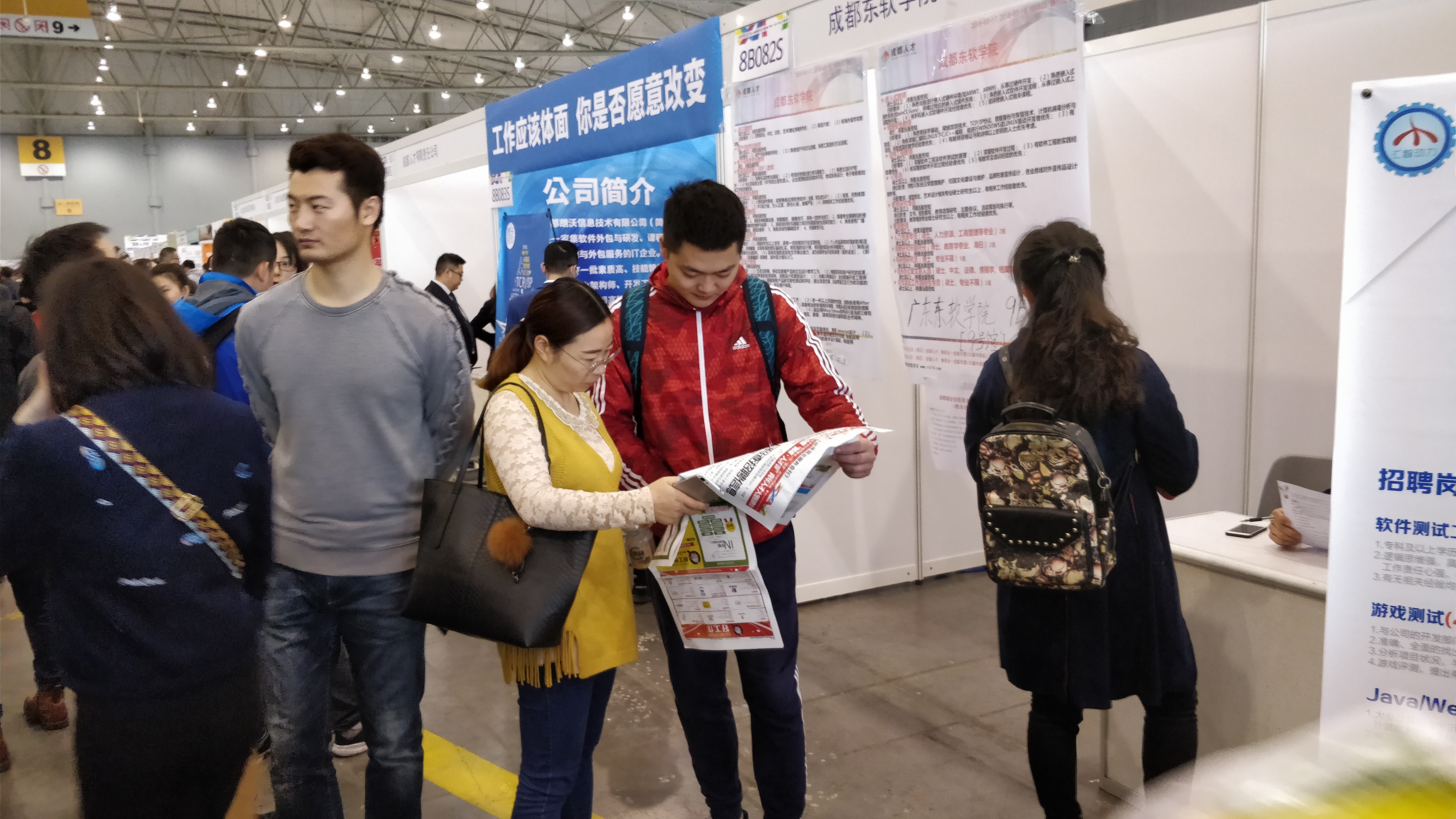 3月18日上午,新葡的京集团8814辅导员现身成都春季特大型人才招聘会暨蓉漂·人才荟”青年人才大型招聘会,现场对公司来参加此次应聘的毕业生们进行了“贴身”就业指导,并鼓励员工们积极参加就业面试。