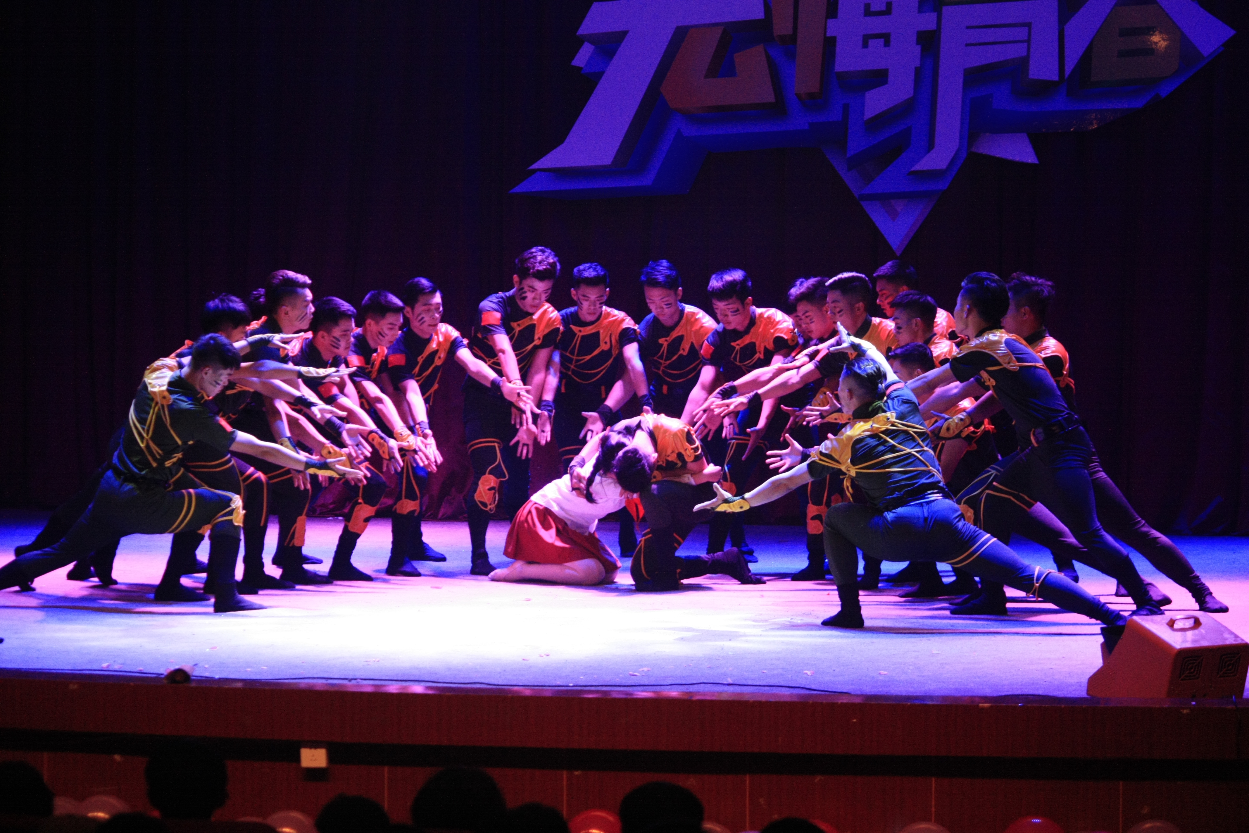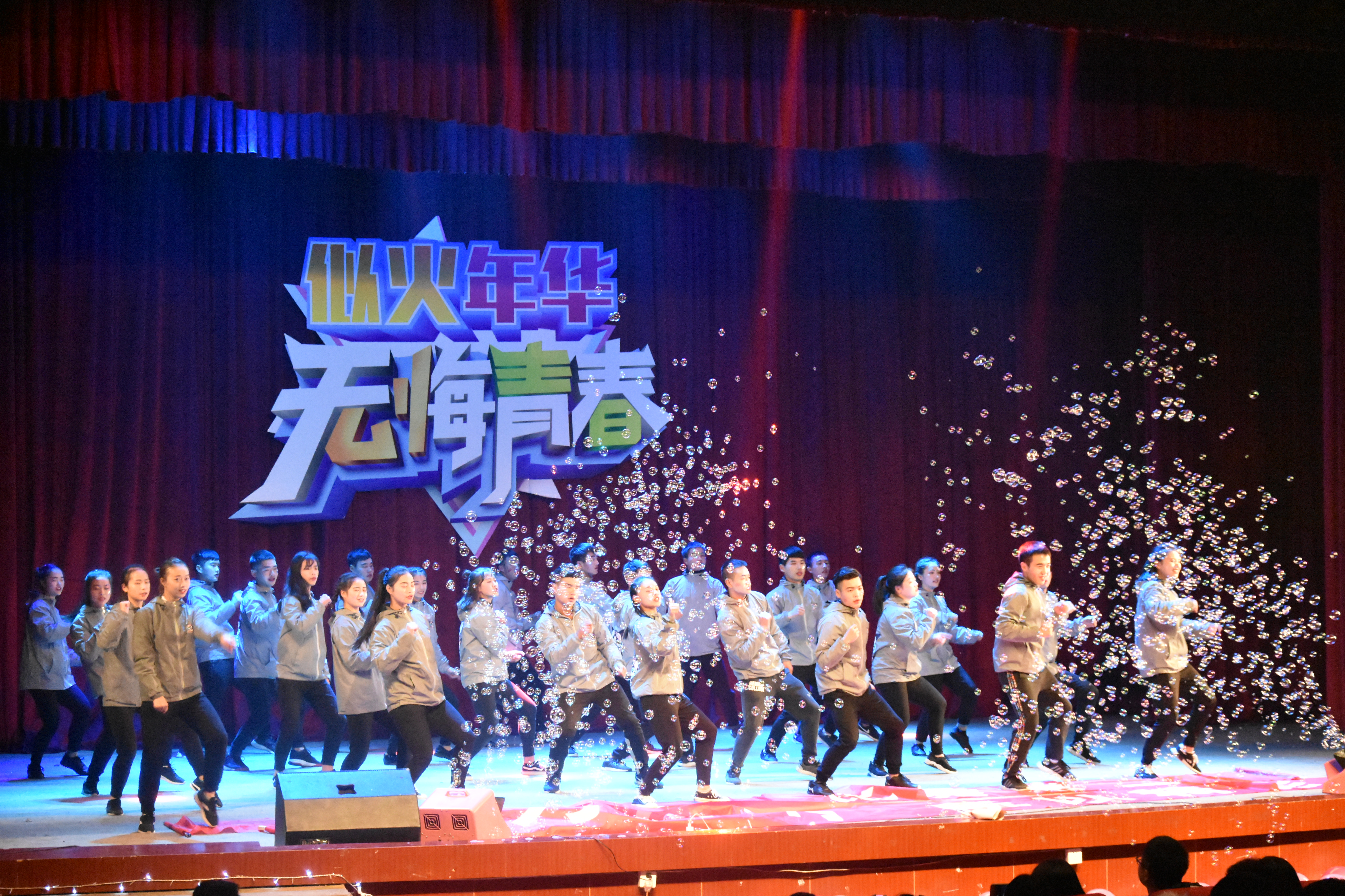 我们的青春在这里绽放,放飞体育人的激情,让我们挥洒青春,与激情共舞——由《异域青春的踏板情》健美操作为本次晚会的开场舞。随后,主持人上台介绍了晚会的主要内容,并宣布迎新晚会正式开始。本次迎新晚会共分为三个篇章。