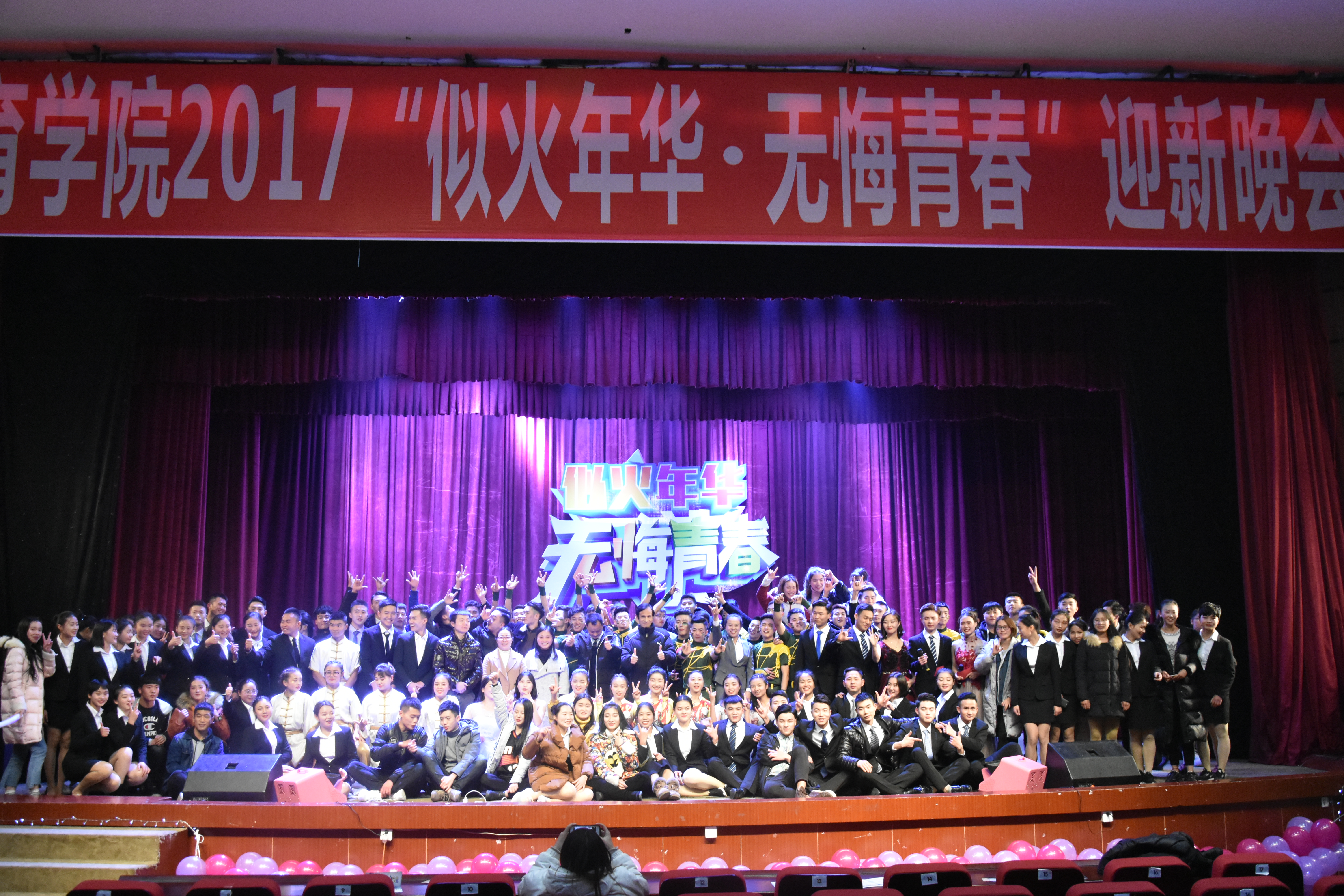 最后,由全体演员、工作人员与嘉宾合影留念。至此,在观众们的热烈掌声中,本次迎新晚会圆满落幕。