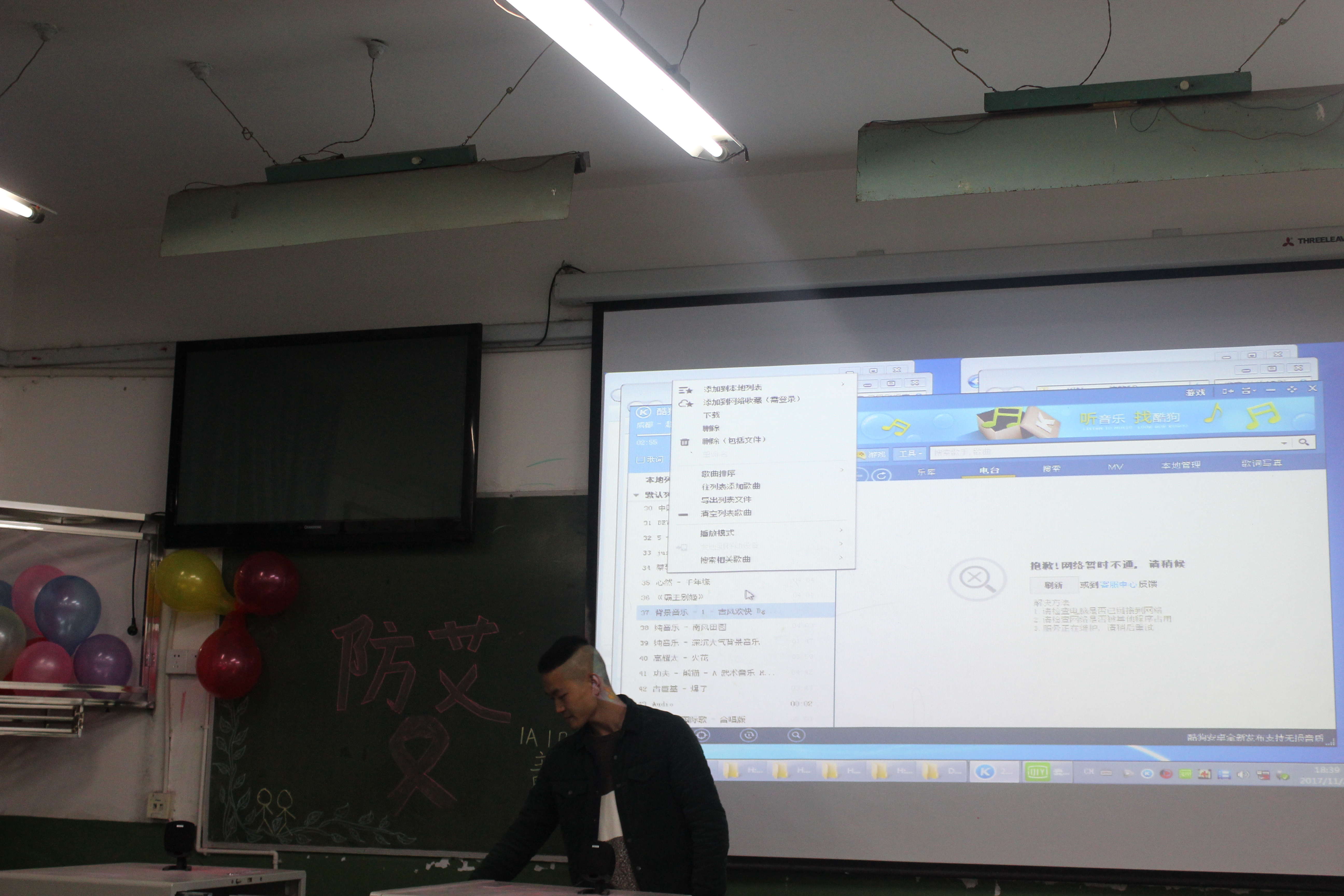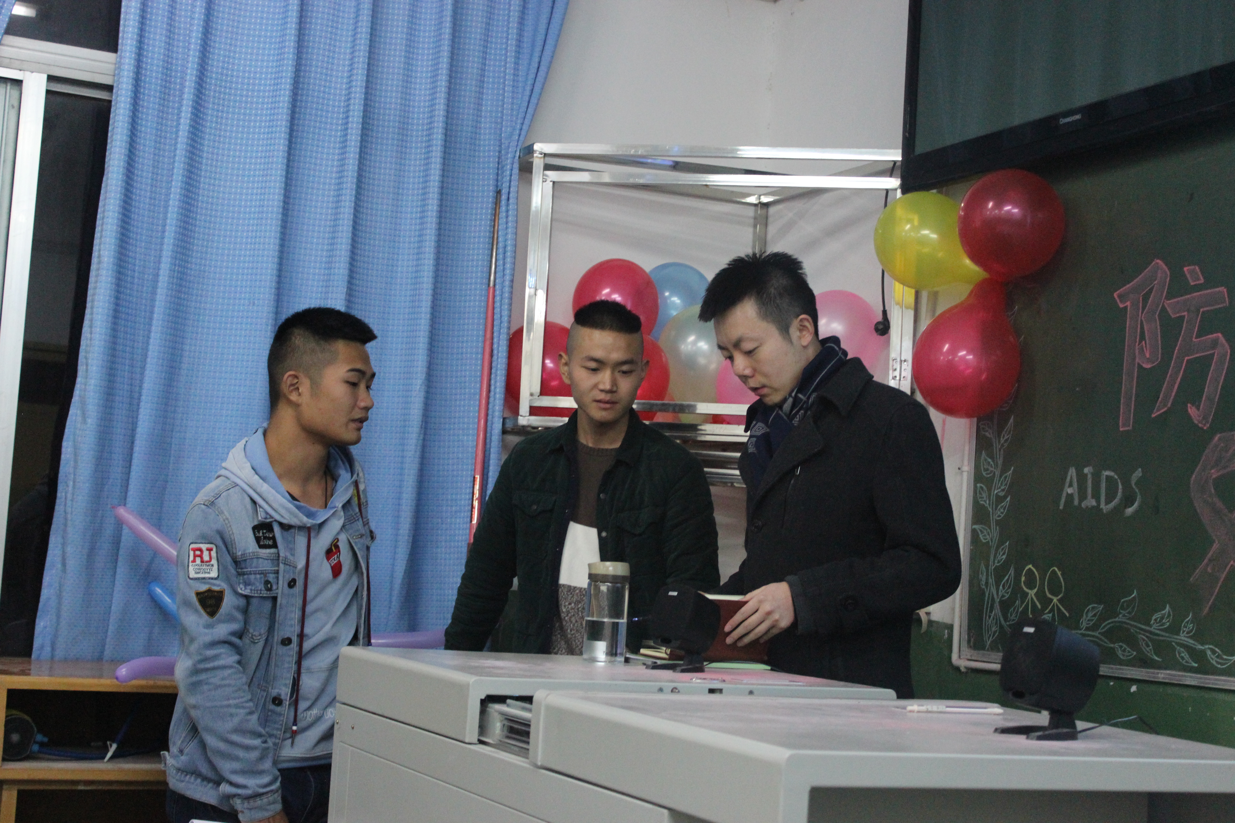 此次班会由两班班委共同协助召开。班会之初是两班教学指导老师付成林和李春叶老师的见面会,会上两位老师进行简单自我介绍后,对同学们的安全、社会交往方面出现的问题及其可能衍生出来的恶性事件进行了解说。随后付老师便对期末备考提出了相应要求及备考相关方面的指导与强调。最后,以防艾、防毒等安全知识强调引出了此次班会的主题——“珍爱生命,预防艾滋”。
