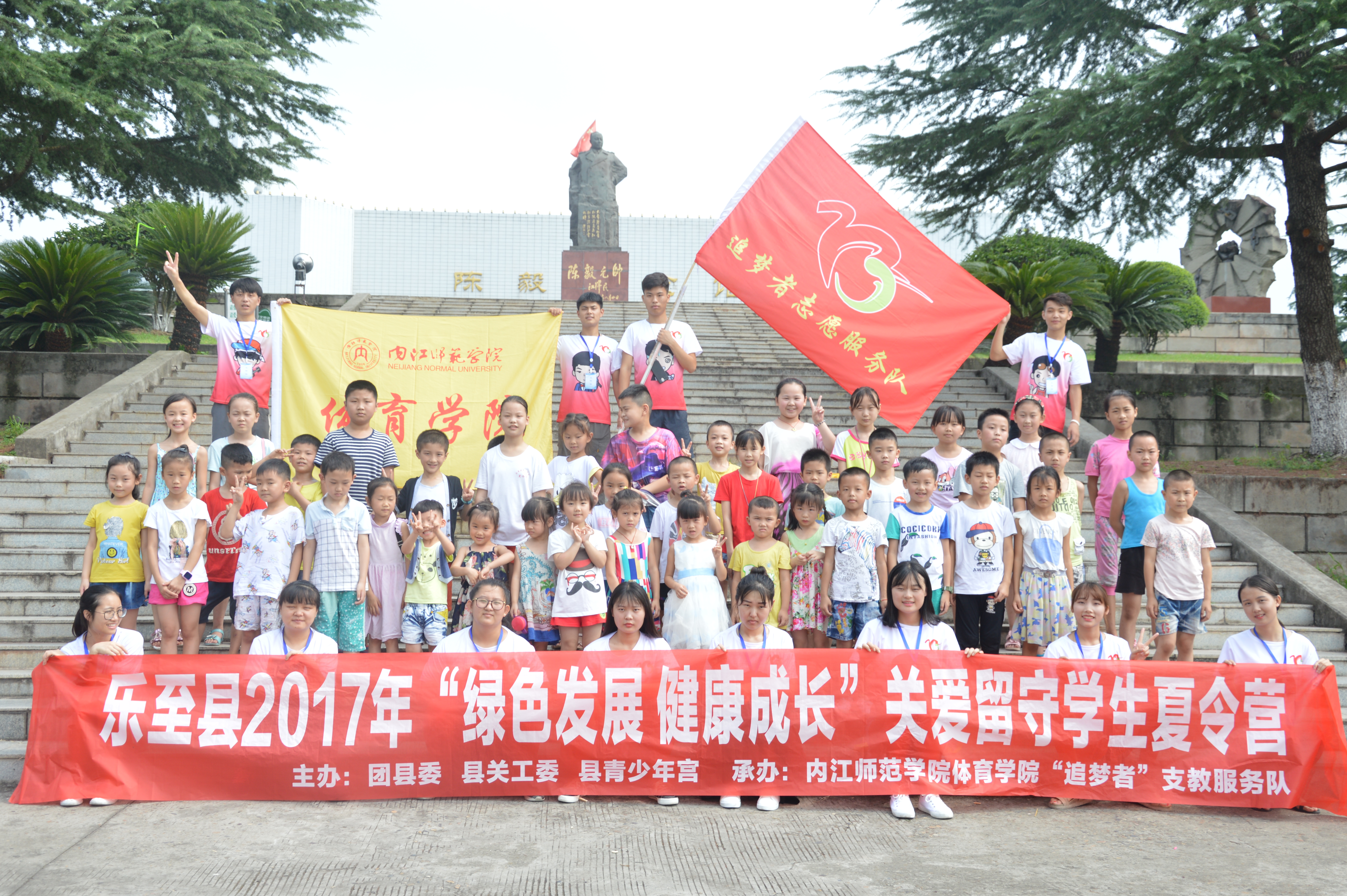 2017年7月16日,追梦者志愿服务队在乐至县青少年宫的义务支教活动进行第三天,这三天里,志愿者们和孩子们相处融洽,互相学习。现在,为了丰富支教活动和多方面培养员工的能力,志愿者们决定在7月16日开展员工活动。活动内容分为两个版块,趣味运动会和参观陈毅纪念馆。