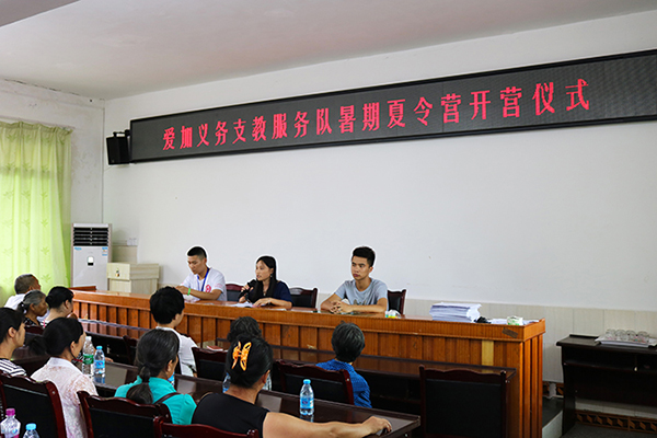 随后,在陈成老师的协助下,组织孩子们及其家长在望龙中学会议室举行了启动仪式。指导老师罗冬丽在仪式上对学校和家长的支持与配合表示真挚的感谢,并且对此次义务支教活动寄于殷切期望。队长张家麒就开设的课程内容向家长和孩子们做了简单的介绍。“我家的孩子刚刚小学毕业,即将进入初一,给他报名参加这个活动,主要是想让他提前适应一下初中生活,同时也能学到初中课本的知识,他也很愿意来参加。”家长说道。