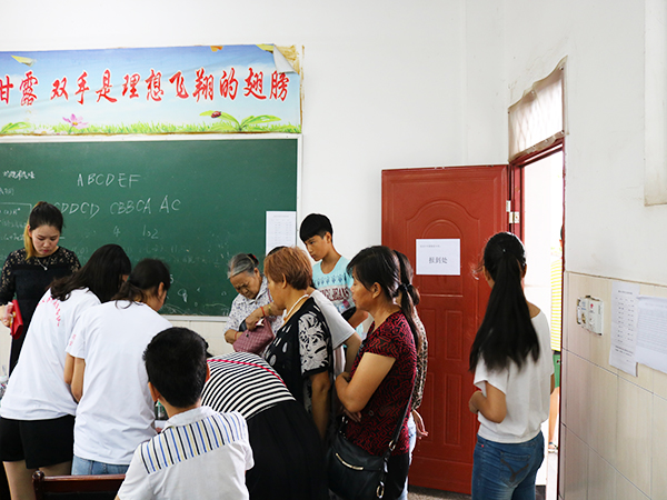 7月9日,“爱加”义务支教服务队的支教生活正式开始。早上8点,员工们在家长的带领下纷纷前来报到,志愿者们迅速开启工作模式,进入角色,迎接前来报到的员工。每个人面带笑容,与员工及其家长交流沟通,了解每个员工的情况。10点30分,报到的员工已经达到61人,包括小升初13名以及初二员工48名。