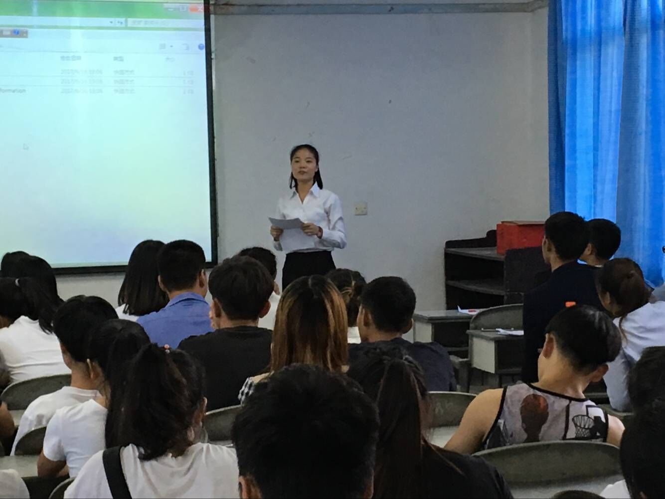 在短暂的回忆后 ,晚上七点,主持人胡丽莎宣布大会正式开始。并进行了大会的第一项议程:全体起立,奏唱团歌。随后学工办罗冬丽老师对第九届团总支员工会的工作进行了总结,并对第九届团总支员工会的艰辛付出报以了充分的肯定。罗冬丽老师讲话结束后,组织部副部长许志愿同学宣读了本次竞选的规则要求以及注意事项。随后2016级12位参加竞选的同学依次上台进行了竞职演讲。16级的同学们就开学进来的学习和工作经历开始自己演讲,之后对员工会的施政纲领进行了详细的阐述。同学们讲到:将会继承以往员工会的宗旨,坚持“以同学为本”的工作原则,坚持“务实高效,创新民主”的工作作风,加强员工会内部的组织与交流。拉进与员工会各成员之间的距离,提高员工会内部的凝聚力,加强各部门间的交流。加强员工会的组织性和纪律性,进一步提高员工会自身组织形象,完善员工会对外的交流和反馈。