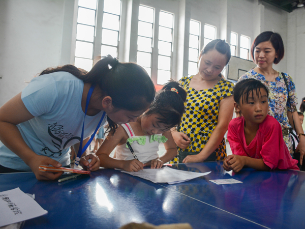 13日上午9点30分,天空志愿团队在汉旺武汉晚报车都希望小学的暑期三下乡社会实践活动开营仪式拉开了帷幕。仪式过程中,汉旺武汉晚报车都希望小学的董事长发表了讲话,向天空志愿者们寄予了厚望。同时,君爱公益组织负责人也授旗于天空志愿团队,旨在支持天空志愿者在汉旺进行的一系列志愿活动。除此,天空志愿团队向参与的小朋友介绍了此次社会实践活动的课程,课程安排丰富多彩,将以篮球、足球、手工、健美操等文体活动为主线,语文、数学、英语等课程辅导为分轴,在开阔小朋友视野的同时,也让他们感受到快乐与温暖。仪式结束后,志愿者们组织了小朋友进行了兴趣课程的选课,此次兴趣选课因人数及年龄的缘由分为了大小两个班,在选课过程中,小朋友们积极热情,满怀期待,在选到心仪的课程后,都露出了开心的笑容。