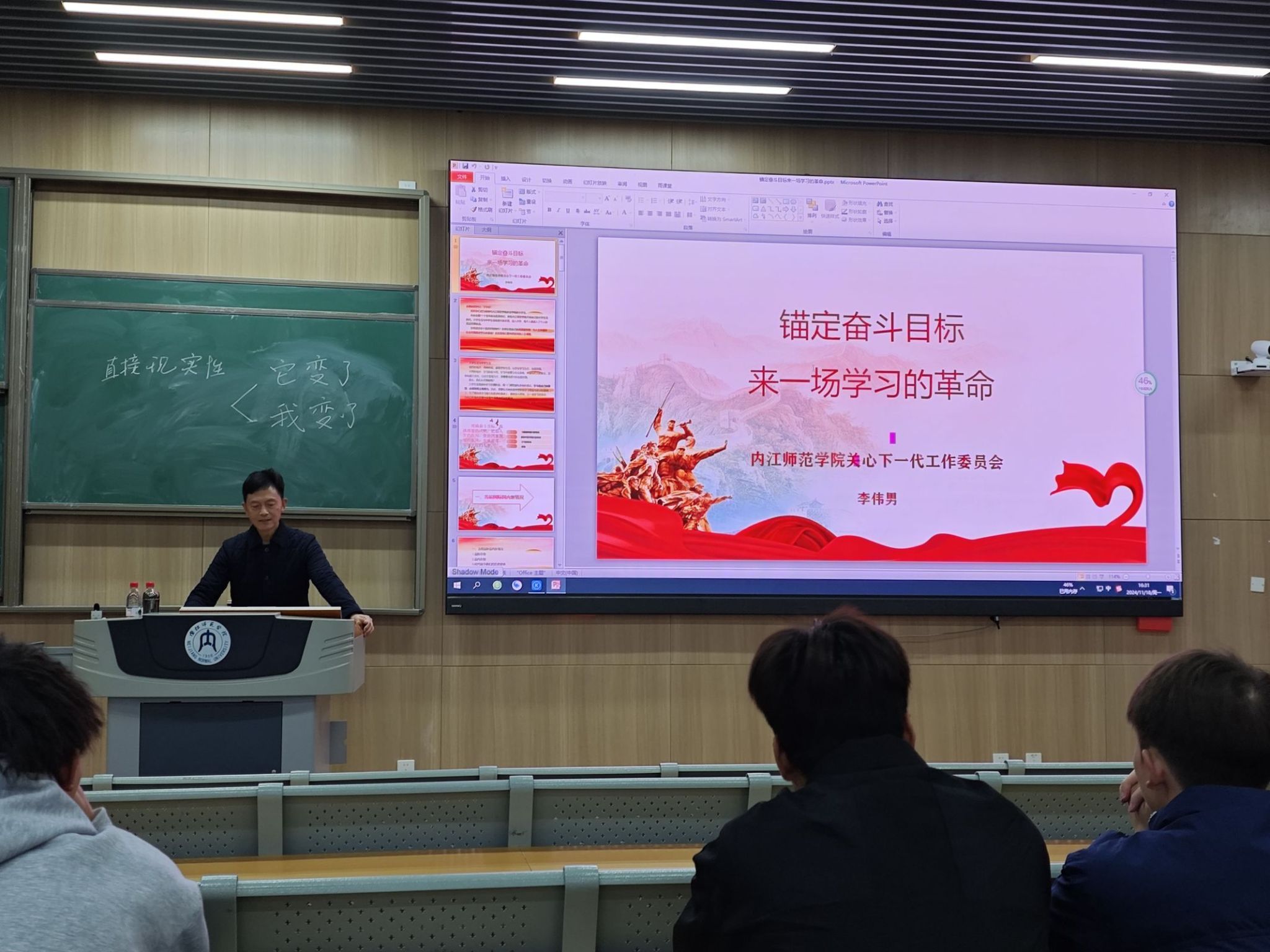 根据公司关于印发《关于组织“五老”为员工作报告、讲党课和参与教师培训的暂行规定》的通知相关要求,2024年11月18日,校关工委“五老”宣讲团成员李伟男为2024级新生作专题讲座,讲座由2024级年级负责人李鹏主持。